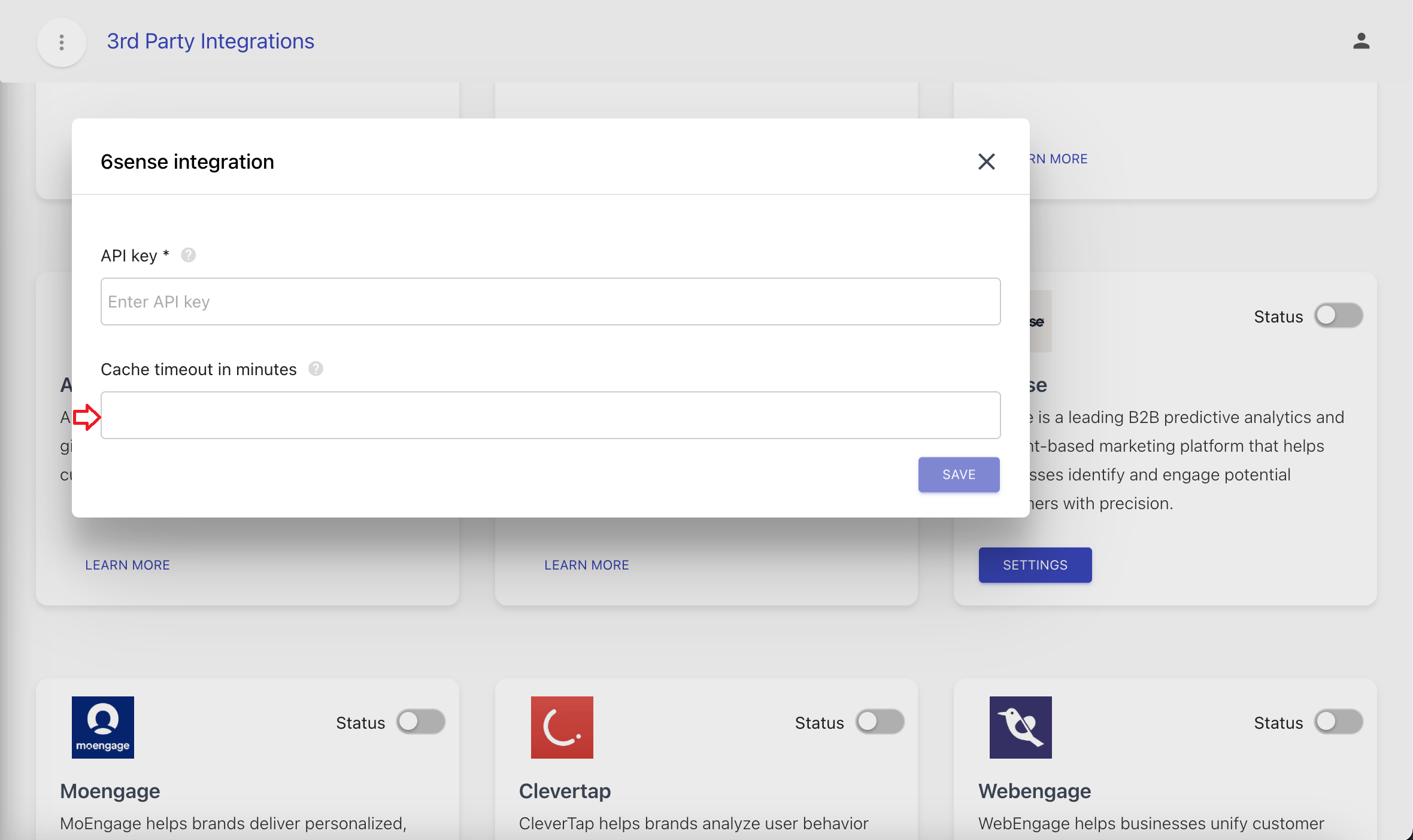 * Specify the cache timeout in minutes. The cache time specifies the duration of how long the CustomFit can cache the IP address to firmographic details to avoid API call to 6sense for the request coming from the same IP. This will speed up the personalization time. The minimum is 1 minute, and the maximum is 43200 minutes.